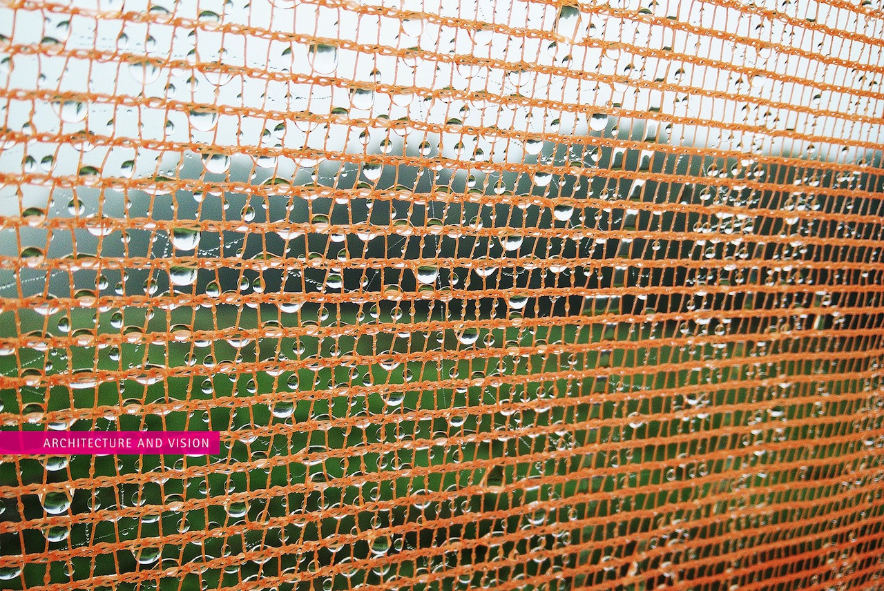 낮 동안 40 ℃에 육박하던 대기는 밤사이 15 ℃ 이하로 급강하합니다. 이슬점(dew point) 아래로 떨어지는 순간 공기 중 수증기가 액화되어 메쉬 표면에 맺히고, 중력·모세관 현상에 의해 아래로 흘러내립니다.
